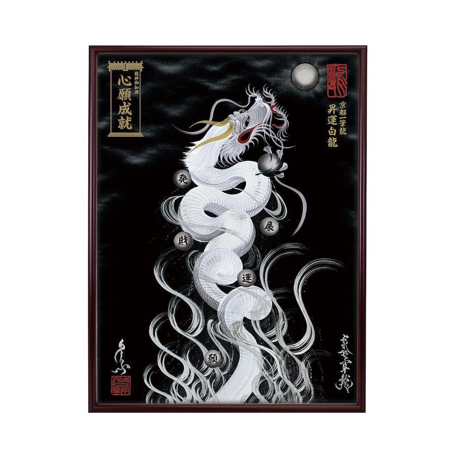 【商品の特徴】・京都一筆龍描画の種類/色彩は【26種】よりお選びいただけます<昇運龍14種(双龍5種/1体龍9種)> <守護龍10種(双龍2種/1体龍8種)> <縁結び龍2種(双龍2種)>・『京都一筆龍の御加護/御利益の象徴=胴体部分を一切途切れさせず一筆で描く動画』のQRコード印字ステッカー(2色/4サイズ)を同封お納めいたしております・描画に記載可能なお願い事は6種のご祈願内容より御選定いただけます心願成就/事業繁栄/金運上昇/健康祈願/家内安全/良縁成就・国内生産の高級額縁(デッサン額)を使用。額縁の色/機能は7種よりお選びいただけます。・龍の眼に光を宿し生気を吹き込む『龍の瞳(ラインストーン)』加工・京都一筆龍絵師手島啓輔署名、落款入り・御贈答のご利用も多く、懇切丁寧な包装