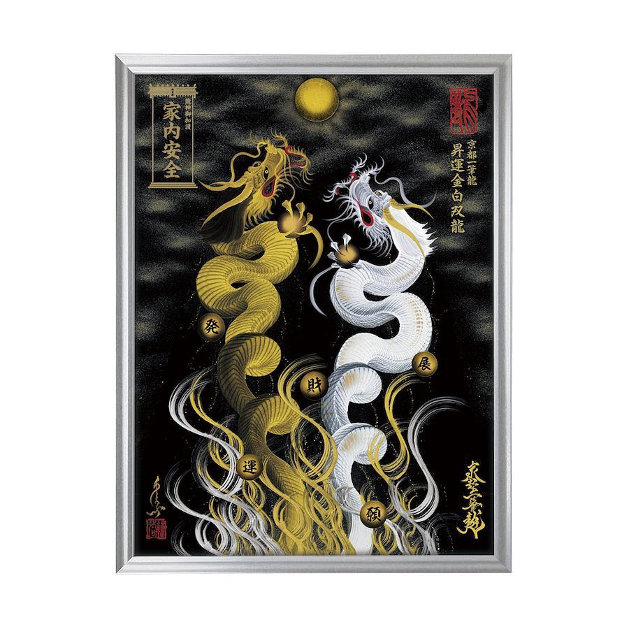 【商品の特徴】・京都一筆龍描画の種類/色彩は【26種】よりお選びいただけます<昇運龍14種(双龍5種/1体龍9種)> <守護龍10種(双龍2種/1体龍8種)> <縁結び龍2種(双龍2種)>・『京都一筆龍の御加護/御利益の象徴=胴体部分を一切途切れさせず一筆で描く動画』のQRコード印字ステッカー(2色/4サイズ)を同封お納めいたしております・描画に記載可能なお願い事は6種のご祈願内容より御選定いただけます心願成就/事業繁栄/金運上昇/健康祈願/家内安全/良縁成就・国内生産の高級額縁(デッサン額)を使用。額縁の色/機能は7種よりお選びいただけます。・龍の眼に光を宿し生気を吹き込む『龍の瞳(ラインストーン)』加工・京都一筆龍絵師手島啓輔署名、落款入り・御贈答のご利用も多く、懇切丁寧な包装