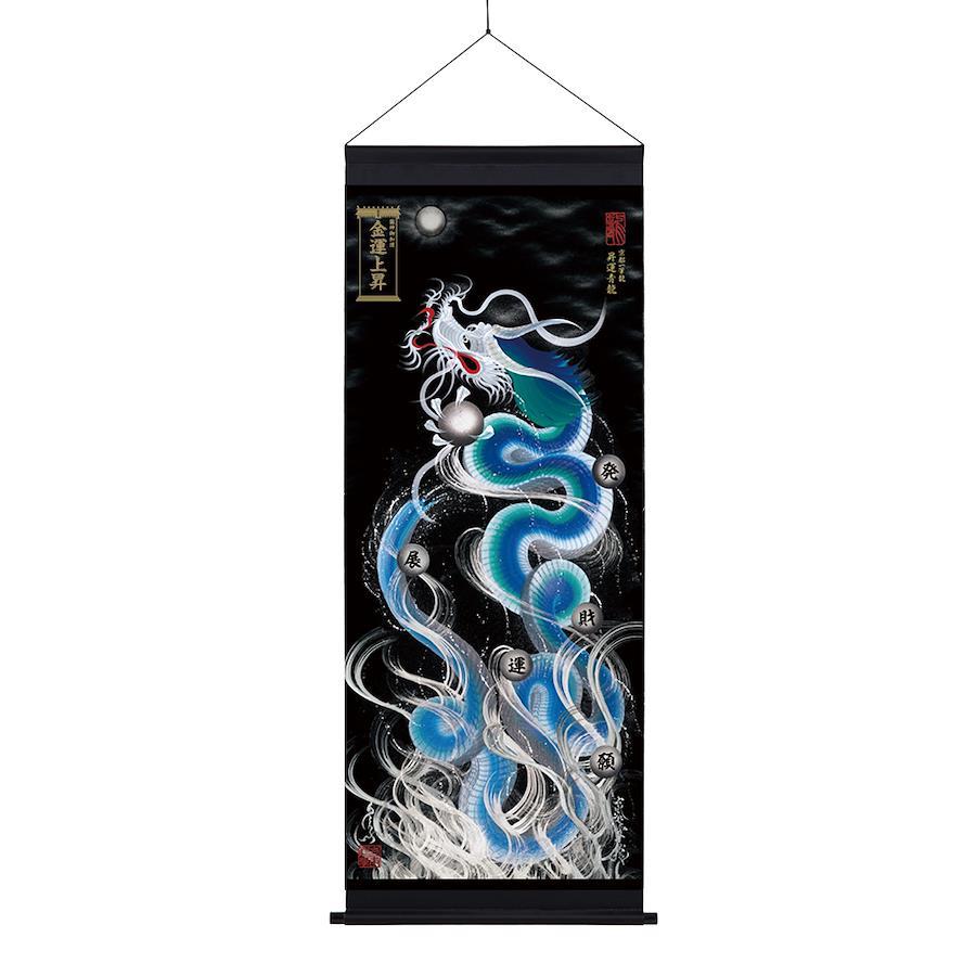 【商品の特徴】・京都一筆龍描画の種類/色彩は【26種】よりお選びいただけます<昇運龍14種(双龍5種/1体龍9種)> <守護龍10種(双龍2種/1体龍8種)> <縁結び龍2種(双龍2種)>・『京都一筆龍の御加護/御利益の象徴=胴体部分を一切途切れさせず一筆で描く動画』のQRコード印字ステッカー(2色/4サイズ)を同封お納めいたしております・描画に記載可能なお願い事は6種のご祈願内容より御選定いただけます心願成就/事業繁栄/金運上昇/健康祈願/家内安全/良縁成就・御札など添付のお祀り用マグネットを使用してお祀り(取り外し/位置変更可能)・発色が良く落ち着いた風合いの防炎スエード生地製(厚み約0.35~ ※官製郵便はがき約1.5枚程度/コピー用紙約4枚分程度)※ スエードは皮革・合成皮革ではなく専用布の名称となります。・吊り下げ用の上下軸棒付き(下部は軸先付き)※軸棒を外して飾られる場合でも、紐や止め具(画鋲、釘、ネジ等)をお使いいただけるハトメ穴付き(表面からは見えません)・丈夫で切れにくくシンプルな風合いの江戸打ち紐付き(黒/白2色)・龍の眼に光を宿し生気を吹き込む『龍の瞳(ラインストーン)』加工・京都一筆龍絵師手島啓輔署名、落款入り・御贈答のご利用も多く、懇切丁寧な包装