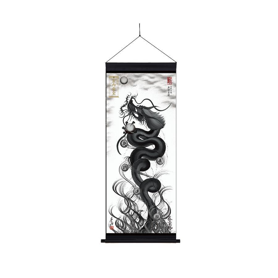 【商品の特徴】・京都一筆龍描画の種類/色彩は【26種】よりお選びいただけます<昇運龍14種(双龍5種/1体龍9種)> <守護龍10種(双龍2種/1体龍8種)> <縁結び龍2種(双龍2種)>・『京都一筆龍の御加護/御利益の象徴=胴体部分を一切途切れさせず一筆で描く動画』のQRコード印字ステッカー(2色/4サイズ)を同封お納めいたしております・描画に記載可能なお願い事は6種のご祈願内容より御選定いただけます心願成就/事業繁栄/金運上昇/健康祈願/家内安全/良縁成就・御札など添付のお祀り用マグネットを使用してお祀り(取り外し/位置変更可能)・発色が良く落ち着いた風合いの防炎スエード生地製(厚み約0.35~ ※官製郵便はがき約1.5枚程度/コピー用紙約4枚分程度)※ スエードは皮革・合成皮革ではなく専用布の名称となります。・吊り下げ用の上下軸棒付き(下部は軸先付き)※軸棒を外して飾られる場合でも、紐や止め具(画鋲、釘、ネジ等)をお使いいただけるハトメ穴付き(表面からは見えません)・丈夫で切れにくくシンプルな風合いの江戸打ち紐付き(黒/白2色)・龍の眼に光を宿し生気を吹き込む『龍の瞳(ラインストーン)』加工・京都一筆龍絵師手島啓輔署名、落款入り・御贈答のご利用も多く、懇切丁寧な包装