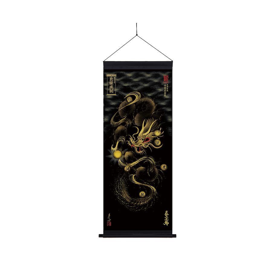 【商品の特徴】・京都一筆龍描画の種類/色彩は【26種】よりお選びいただけます<昇運龍14種(双龍5種/1体龍9種)> <守護龍10種(双龍2種/1体龍8種)> <縁結び龍2種(双龍2種)>・『京都一筆龍の御加護/御利益の象徴=胴体部分を一切途切れさせず一筆で描く動画』のQRコード印字ステッカー(2色/4サイズ)を同封お納めいたしております・描画に記載可能なお願い事は6種のご祈願内容より御選定いただけます心願成就/事業繁栄/金運上昇/健康祈願/家内安全/良縁成就・御札など添付のお祀り用マグネットを使用してお祀り(取り外し/位置変更可能)・発色が良く落ち着いた風合いの防炎スエード生地製(厚み約0.35~ ※官製郵便はがき約1.5枚程度/コピー用紙約4枚分程度)※ スエードは皮革・合成皮革ではなく専用布の名称となります。・吊り下げ用の上下軸棒付き(下部は軸先付き)※軸棒を外して飾られる場合でも、紐や止め具(画鋲、釘、ネジ等)をお使いいただけるハトメ穴付き(表面からは見えません)・丈夫で切れにくくシンプルな風合いの江戸打ち紐付き(黒/白2色)・龍の眼に光を宿し生気を吹き込む『龍の瞳(ラインストーン)』加工・京都一筆龍絵師手島啓輔署名、落款入り・御贈答のご利用も多く、懇切丁寧な包装