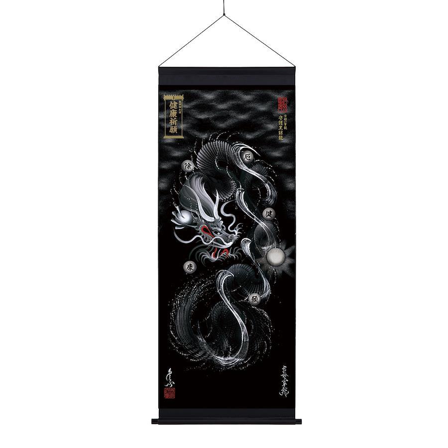 【商品の特徴】・京都一筆龍描画の種類/色彩は【26種】よりお選びいただけます<昇運龍14種(双龍5種/1体龍9種)> <守護龍10種(双龍2種/1体龍8種)> <縁結び龍2種(双龍2種)>・『京都一筆龍の御加護/御利益の象徴=胴体部分を一切途切れさせず一筆で描く動画』のQRコード印字ステッカー(2色/4サイズ)を同封お納めいたしております・描画に記載可能なお願い事は6種のご祈願内容より御選定いただけます心願成就/事業繁栄/金運上昇/健康祈願/家内安全/良縁成就・御札など添付のお祀り用マグネットを使用してお祀り(取り外し/位置変更可能)・発色が良く落ち着いた風合いの防炎スエード生地製(厚み約0.35~ ※官製郵便はがき約1.5枚程度/コピー用紙約4枚分程度)※ スエードは皮革・合成皮革ではなく専用布の名称となります。・吊り下げ用の上下軸棒付き(下部は軸先付き)※軸棒を外して飾られる場合でも、紐や止め具(画鋲、釘、ネジ等)をお使いいただけるハトメ穴付き(表面からは見えません)・丈夫で切れにくくシンプルな風合いの江戸打ち紐付き(黒/白2色)・龍の眼に光を宿し生気を吹き込む『龍の瞳(ラインストーン)』加工・京都一筆龍絵師手島啓輔署名、落款入り・御贈答のご利用も多く、懇切丁寧な包装