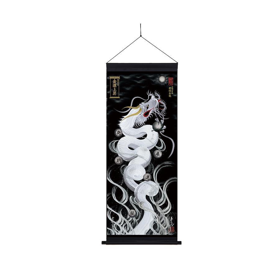 【商品の特徴】・京都一筆龍描画の種類/色彩は【26種】よりお選びいただけます<昇運龍14種(双龍5種/1体龍9種)> <守護龍10種(双龍2種/1体龍8種)> <縁結び龍2種(双龍2種)>・『京都一筆龍の御加護/御利益の象徴=胴体部分を一切途切れさせず一筆で描く動画』のQRコード印字ステッカー(2色/4サイズ)を同封お納めいたしております・描画に記載可能なお願い事は6種のご祈願内容より御選定いただけます心願成就/事業繁栄/金運上昇/健康祈願/家内安全/良縁成就・御札など添付のお祀り用マグネットを使用してお祀り(取り外し/位置変更可能)・発色が良く落ち着いた風合いの防炎スエード生地製(厚み約0.35~ ※官製郵便はがき約1.5枚程度/コピー用紙約4枚分程度)※ スエードは皮革・合成皮革ではなく専用布の名称となります。・吊り下げ用の上下軸棒付き(下部は軸先付き)※軸棒を外して飾られる場合でも、紐や止め具(画鋲、釘、ネジ等)をお使いいただけるハトメ穴付き(表面からは見えません)・丈夫で切れにくくシンプルな風合いの江戸打ち紐付き(黒/白2色)・龍の眼に光を宿し生気を吹き込む『龍の瞳(ラインストーン)』加工・京都一筆龍絵師手島啓輔署名、落款入り・御贈答のご利用も多く、懇切丁寧な包装