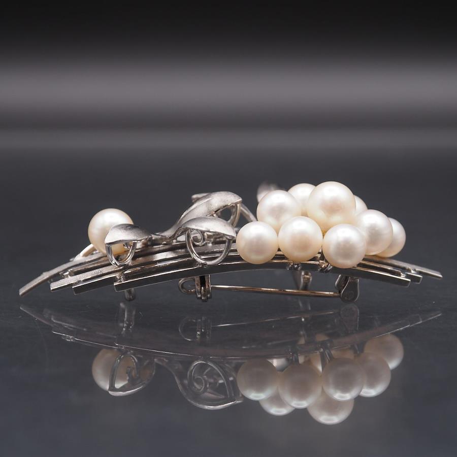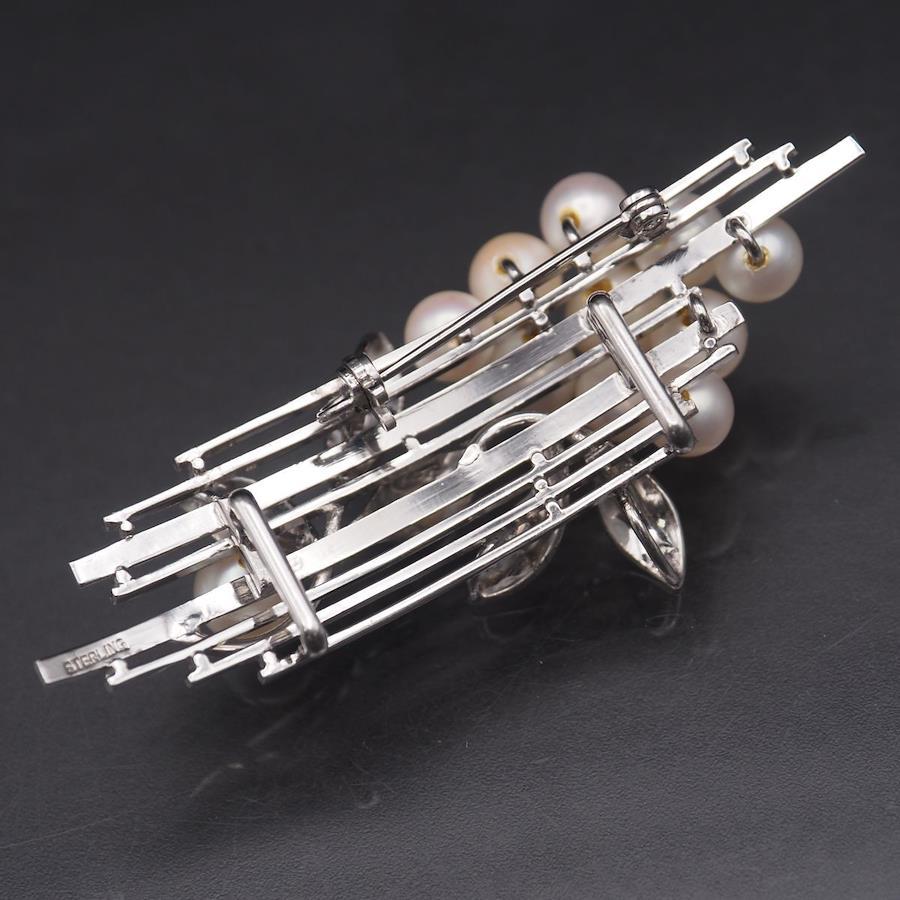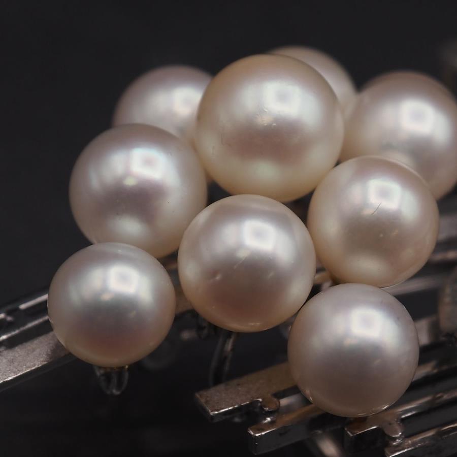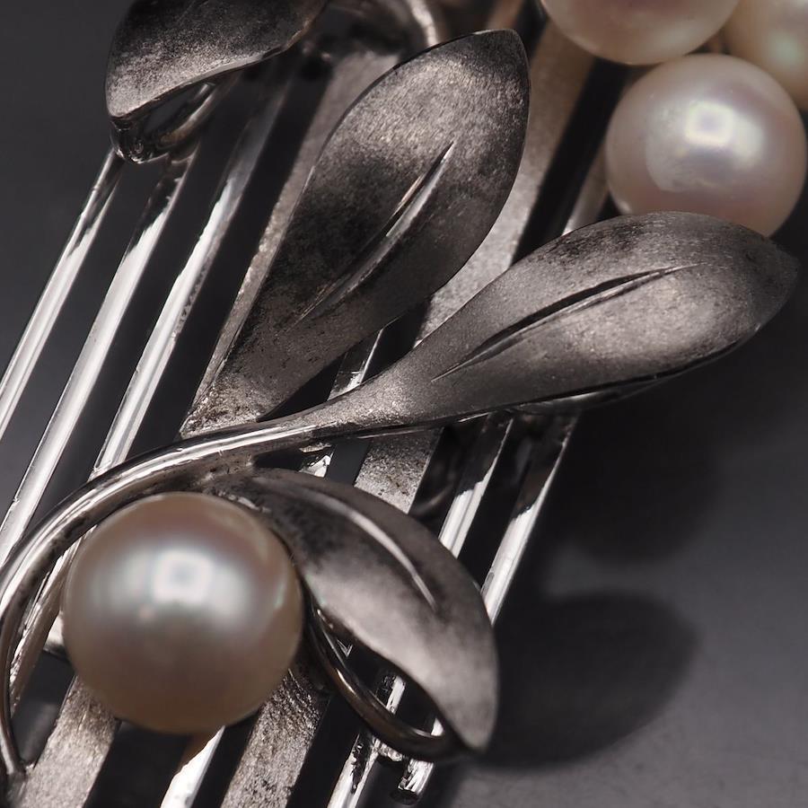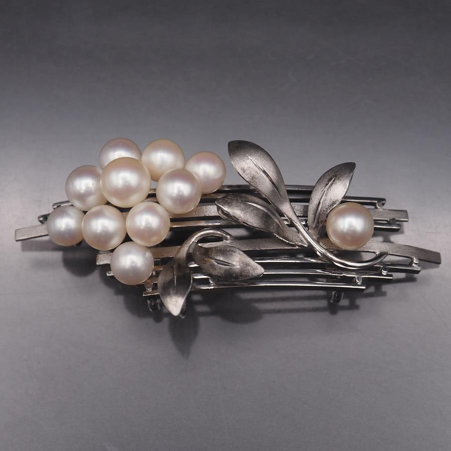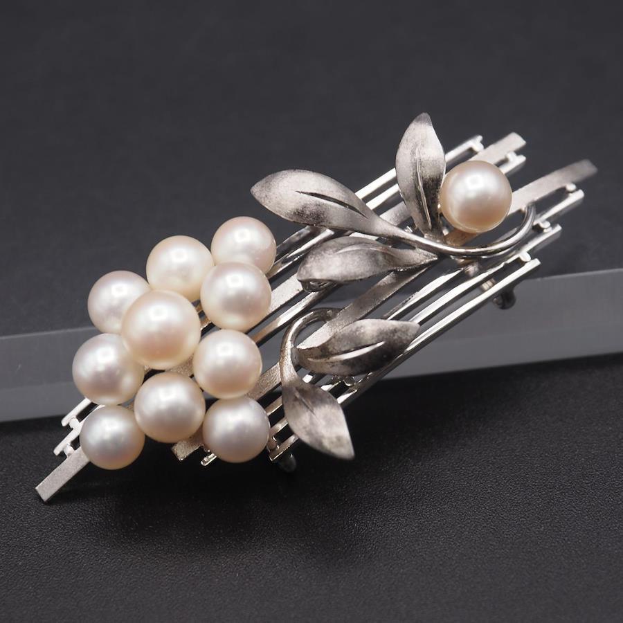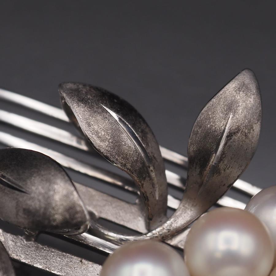 L223 本真珠 6.3-7.4mm11珠 パール STERLING刻印 2way ブローチ 帯留め リーフ デザイン シルバー コサージュ 和装小物 6月誕生石