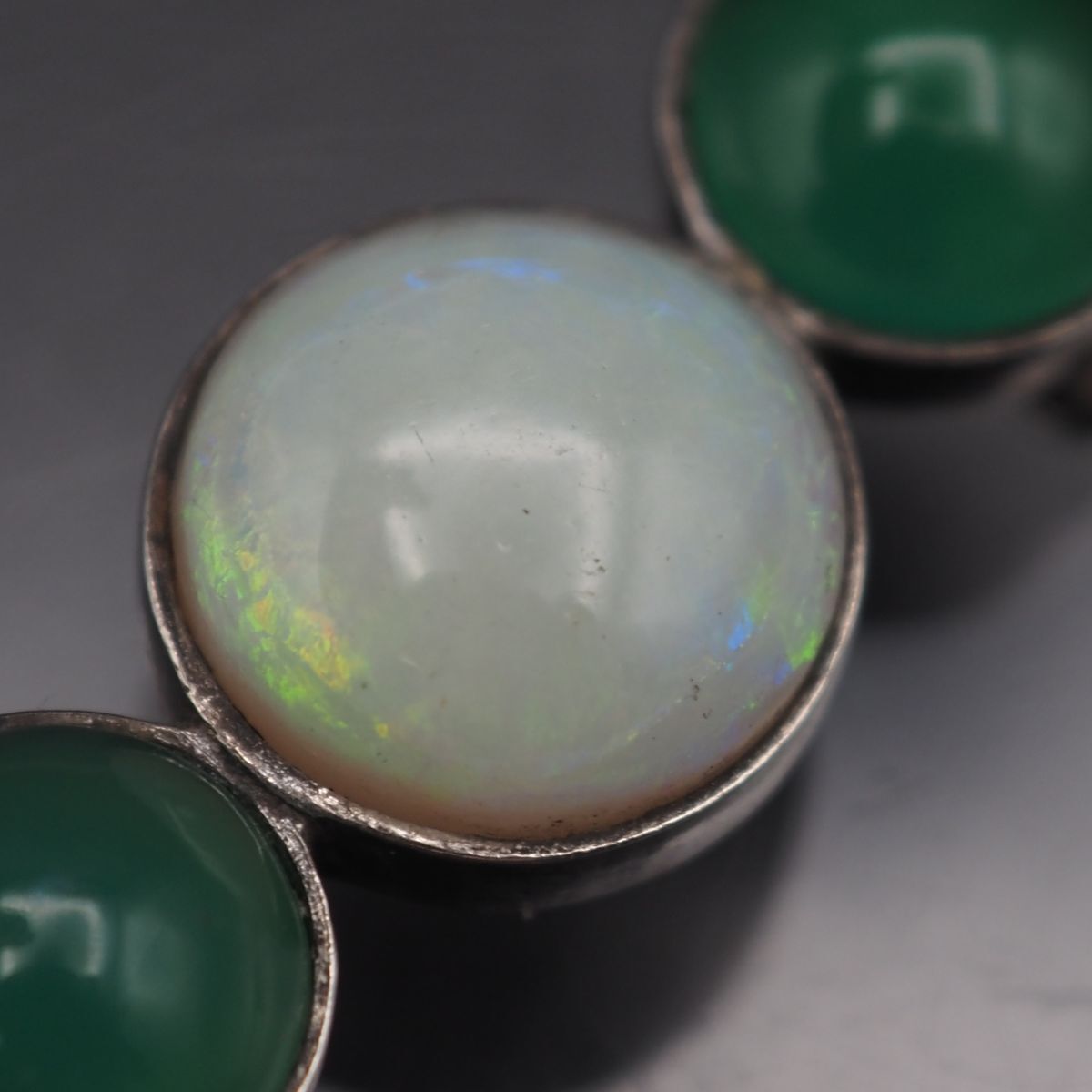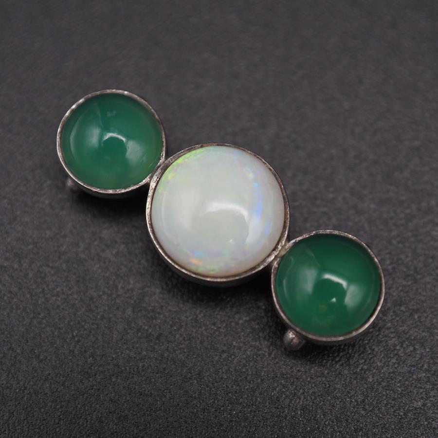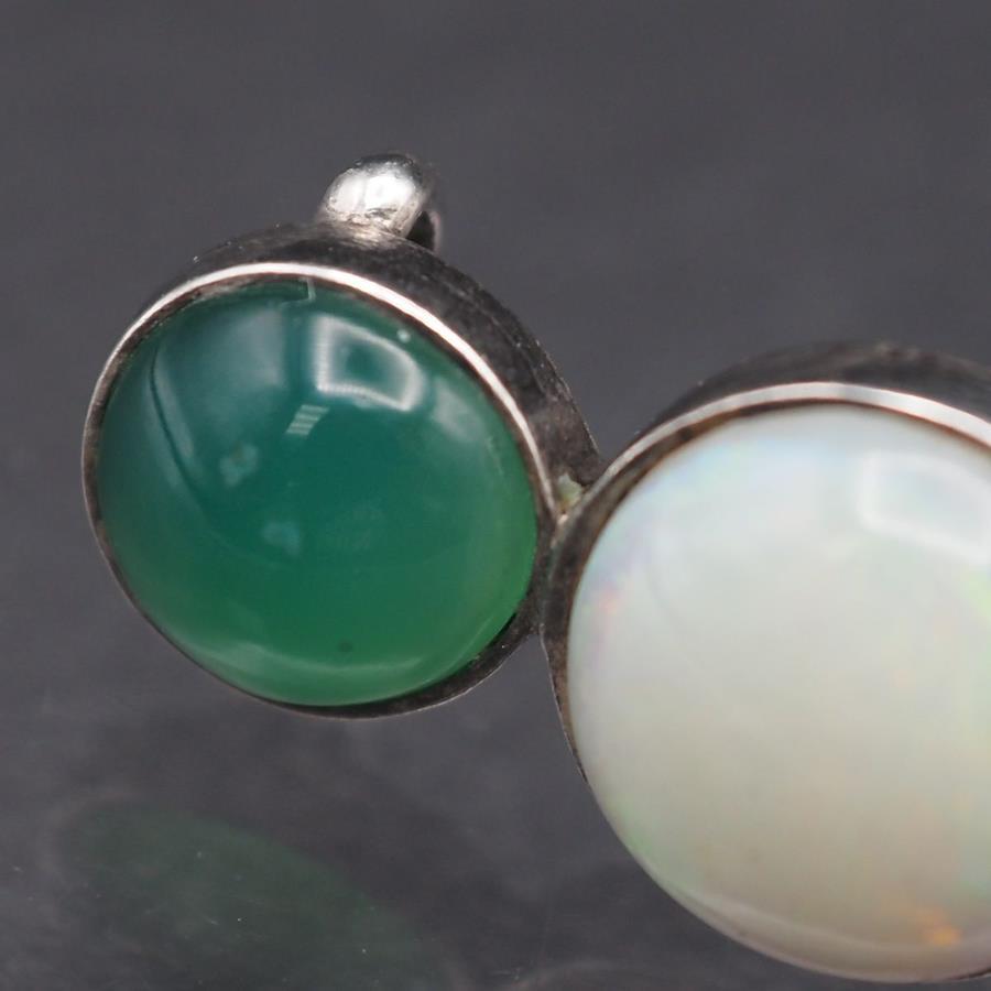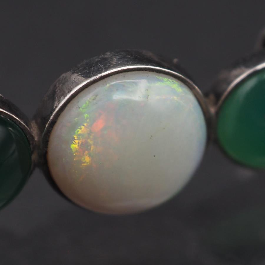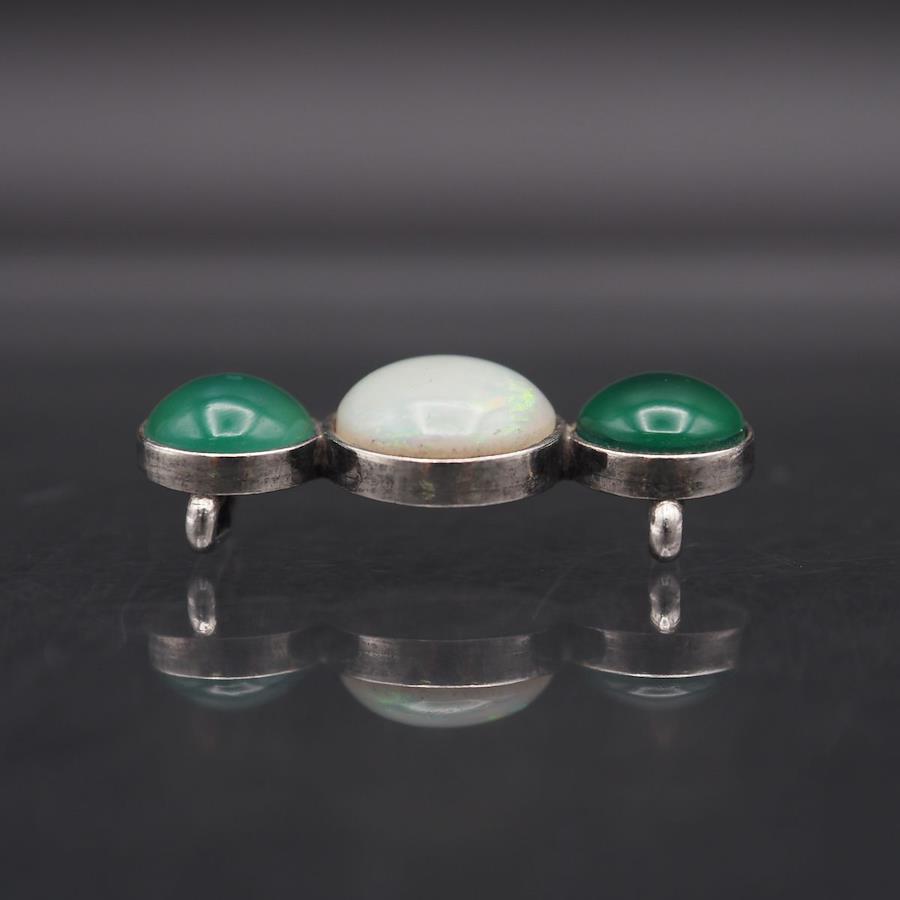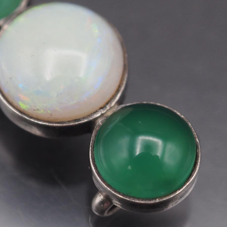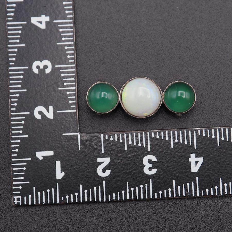 L329 オパール グリーンアゲート 緑瑪瑙 メノウ 帯留め デザイン シルバー 和装小物 10月誕生石