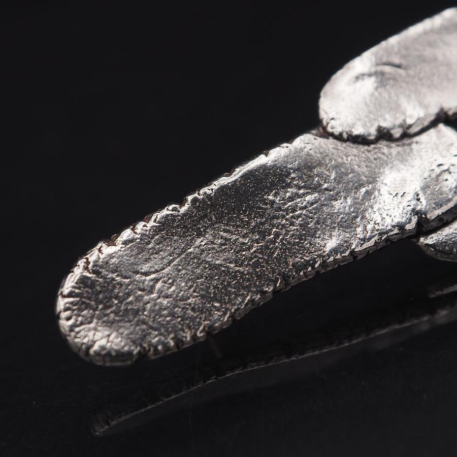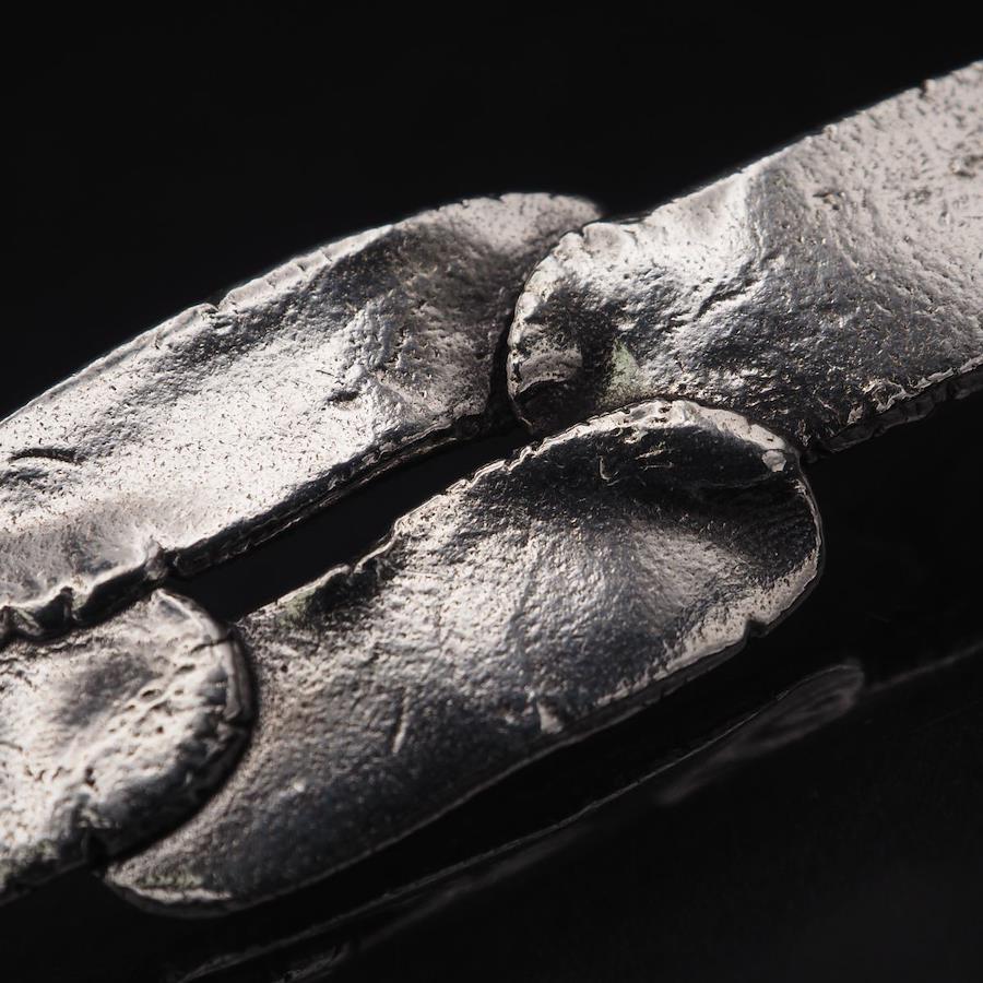 おそらく銀製かと思いますが、刻印が無いため断言できません。画像をたくさん掲載しておりますのでそちらでご確認とご判断をお願いいたします。