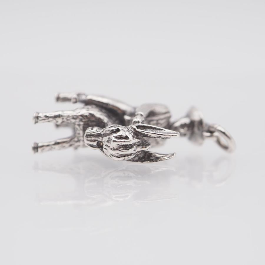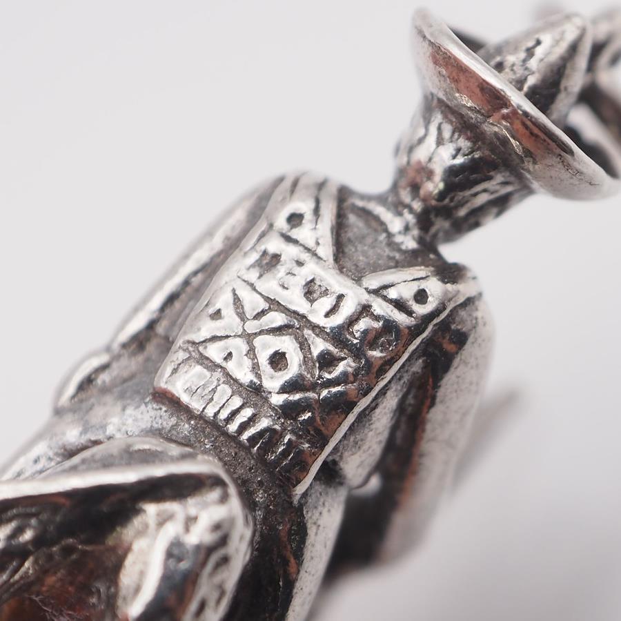 おそらく銀製かと思いますが、刻印が無いため断言できません。画像をたくさん掲載しておりますのでそちらでご確認とご判断をお願いいたします。