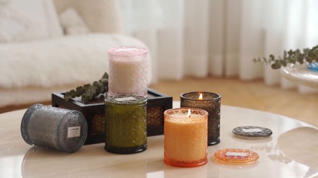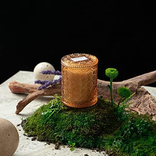 おしゃれなジャーキャンドル- デイジーの花柄を施した高級感のある厚手のキャンドルジャー、インテリアアイテムとしてもお使いになれます。キャンドルとして使用し終えた後でも花瓶やおしゃれなホルダーとして活躍。 温もりのサンダルウッドの香り-ストレスから解放される落ち着きの香り。豊かな香りでスパやお家でのリラックスにぴったり。 アーティスティックなパッケージ ー ゴールドスタンプを施したパッケージに梱包。バレンタインやバースデーギフトにぴったり。 拡がるアロマの香り ー キャンドルを灯せばお部屋に爽やかなアロマの香りが拡がります。香りは豊富なラインナップからお選びいただけます。 サイズと燃焼時間 ー 170グラム。自然由来ワックスとリードフリーのコットンウィックでクリーンにお楽しみいただけます。燃焼時間40時間。クルエルティーフリー、防腐剤フリー。