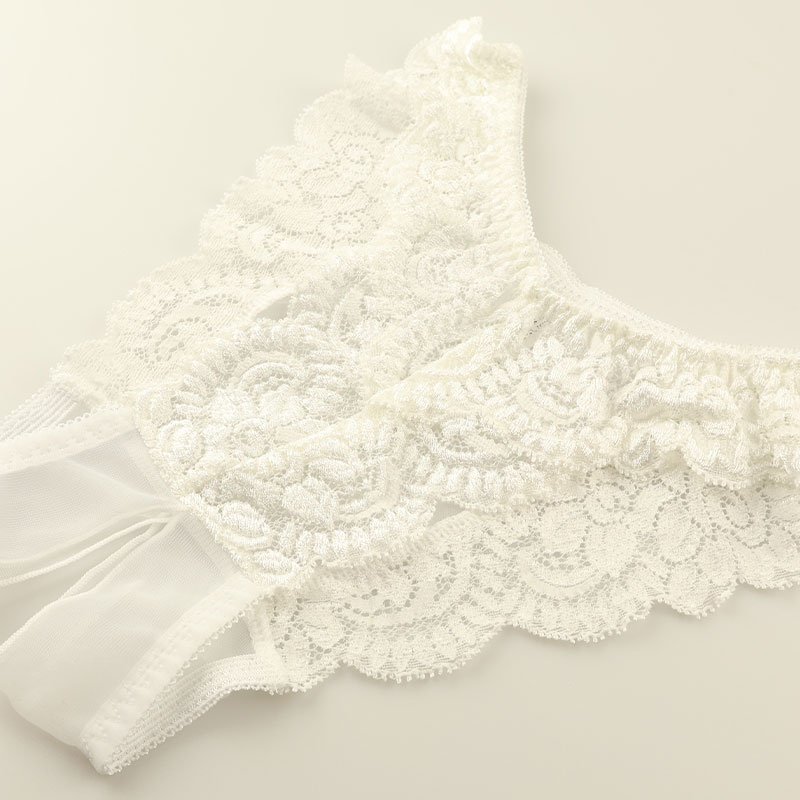 華やかで軽やかな質感を持ち、柔らかな触り心地と優美な透け感が魅力的なセクシーなシースルー素材の20ハーフ生地と透け感のあるストレッチレースを使用したフルバックショーツになります。大胆なデザインのオープンクロッチになったセクシー股ワレランジェリーになります。