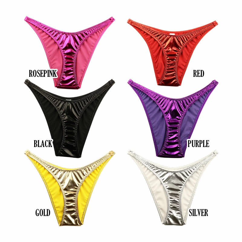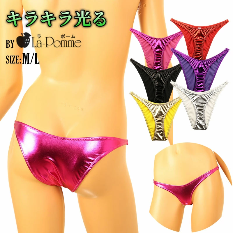 キラキラと光沢感のあるメタリック生地を使用したハーフバックショーツ。フロント部分が細くデザインされたTフロント仕様で、ヒップラインを美しく見せるハイカットスタイルになっています。光沢のあるメタリック素材が光を反射し、存在感のある上品な輝きをプラス。Mサイズ:股上置き寸 約16cm。Lサイズ:股上置き寸 約17cm。軽やかでフィット感のある着用感で、特別な日や気分を上げたいときに取り入れやすいランジェリーです。