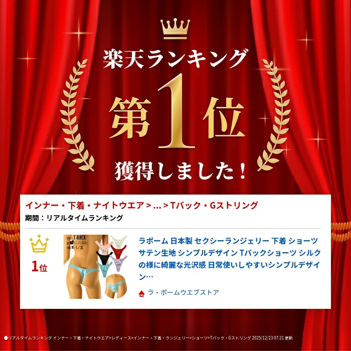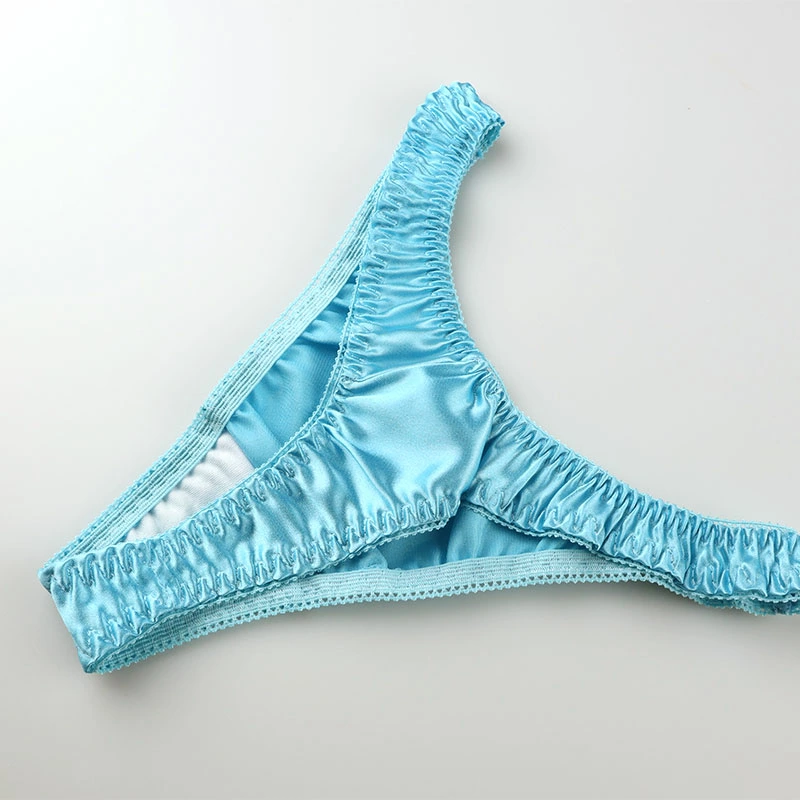 シルクの様に綺麗な光沢感がありツルツルとした肌触りが特徴のサテン生地を使用したTバックショーツになります。シンプルで普段使いにも最適なランジェリーになります。