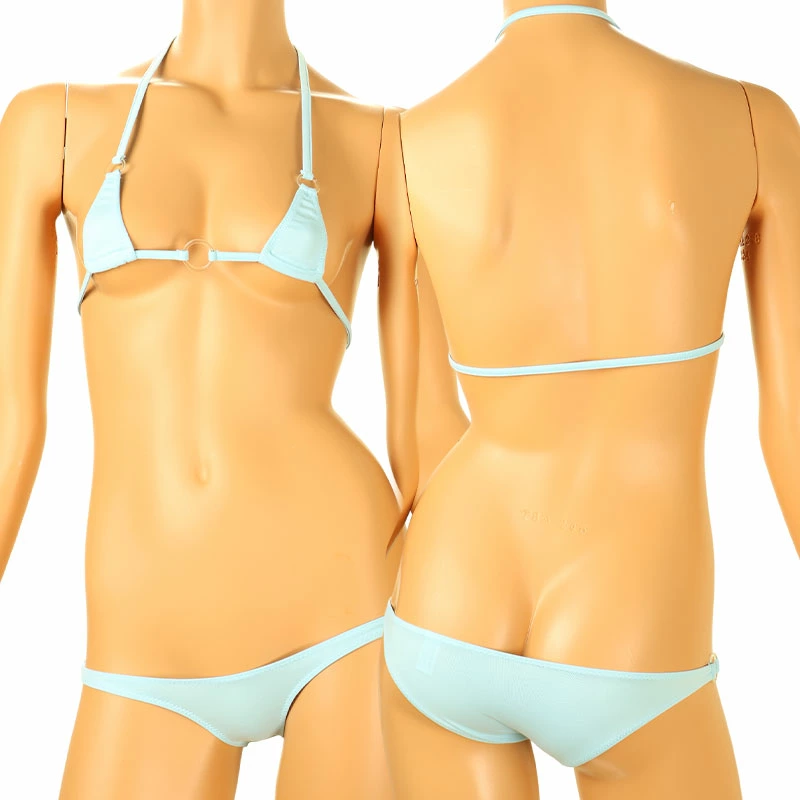 鮮やかな発色とハリ感が特徴のE6000生地を使用した、小ぶりな三角ブラとサイドにクリアリングをあしらったアクセントが魅力のハーフバックショーツのセット。さらさらとした滑らかな肌触りで伸縮性に優れ、快適なフィット感を実現します。大胆なデザインと繊細なディテールが融合したセクシーなランジェリーセットです。