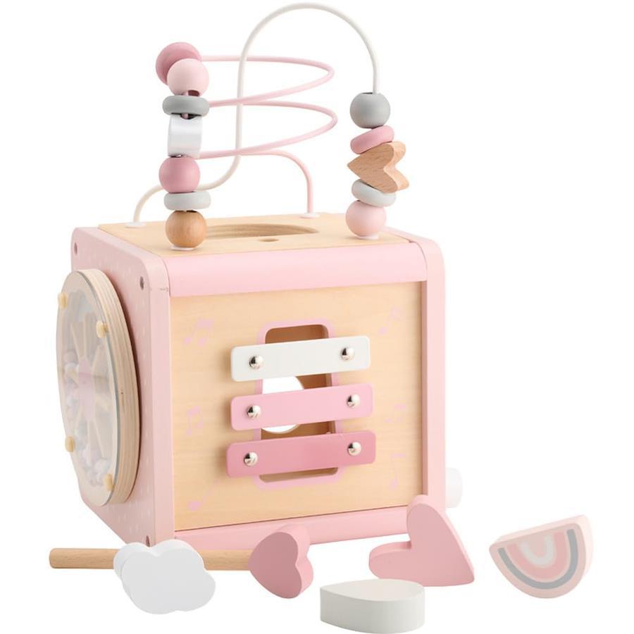 LabelLabel (レーベルレーベル) アクティビティキューブ 木製 おもちゃ ルーピング 型はめ 赤ちゃん 1歳 2歳 誕生日プレゼント 男の子 女の子 木のおもちゃ 知育玩具 (ピンク)