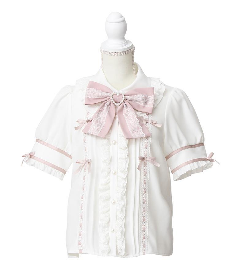 はしごレースがあしらわれたリボンたっぷりのかわいい丸襟ブラウスが登場♪