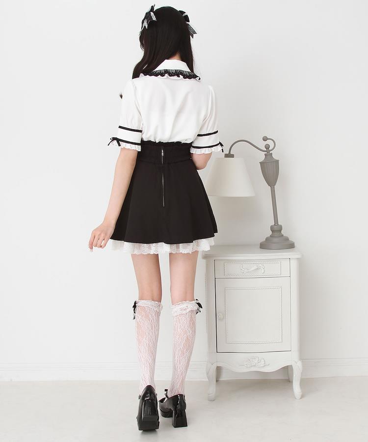 襟元の大きめリボンは取り外しが可能です。ハートパールバックルにレース重ねがポイントに♪