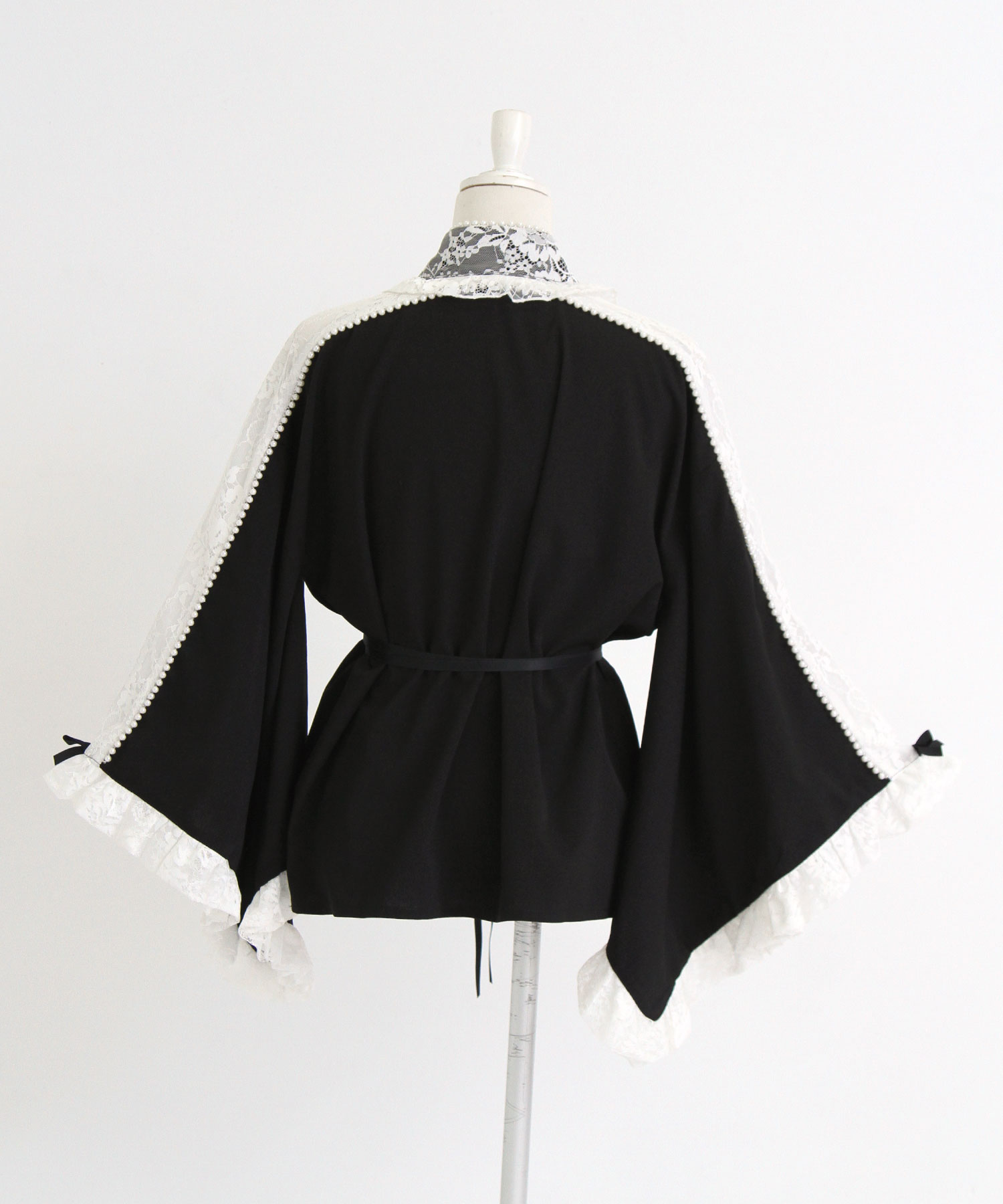袖部分はレースとシフォン生地の切り替えがあり控えめな透け感がかわいく、涼し気にも着用して頂けます。
