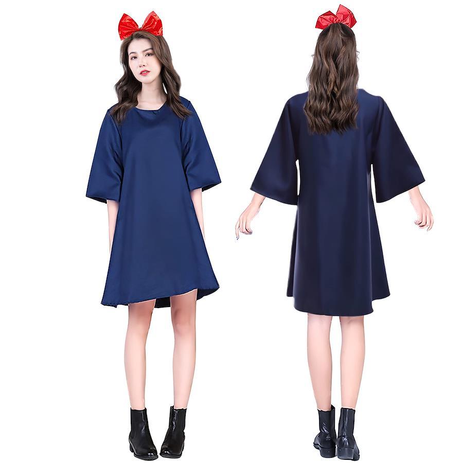 [LAMONKE] ハロウィン コスプレ 魔女の宅急便 キキ 仮装 大人用 魔女 ワンピース カチューシャ付き 2点セット 魔女の宅配屋さん レディース パーティー イベント 衣装 フリーサイズ (ネイビー)