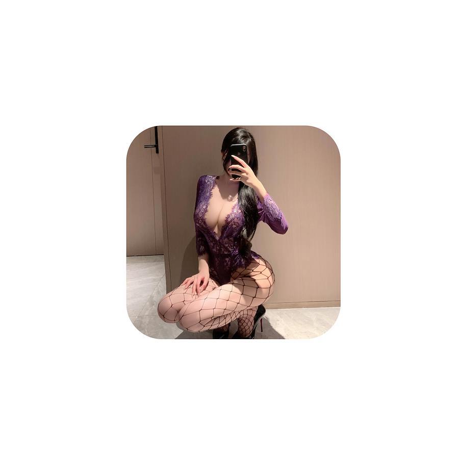【綺麗に魅せる】適度な透け感の布地やレース、魅惑的な背中の露出やミニ丈など体のラインや素肌を綺麗に演出してくれます。バスト部分はレースとメッシュ生地の2重仕様なので、乳首の透けすぎを防いでくれます。シースルーの紫色なので、とても艶かしいです。大人可愛く、艶かしく、セクシーに魅せられます。【材質】93.7%ナイロン+6.3%スパンデックス。深Vネックデザインで、大胆に谷間を露出します。股部分はクロッチオープンで、脚を開くと魅力的な景色が見え、前からも後ろからも耐えがたい誘惑を感じます。脱がずに、いつでもどこでも楽しめます。【セット内容】レオタード+網タイツ。【均一サイズデザイン】衣長:62cm、バスト:ゆったり、袖丈:40cm、ウエスト:74-86、推奨体重:40-65 KG。本製品は高弾性の素材を採用しており、良好な伸縮性とフィット感を備えています。均一サイズのデザインで、体重 65 キロ以下の女性に適しています。【究極の露出】衣服の全体的なデザインは非常に露出度が高く、豊満なヒップと長い脚も隠されていません。体のどこを見ても強い欲望を刺激します。クロッチとヒップには最後の隠しとしてメッシュの生地があり、さらに内側の謎を探索したくなります。脱がなくても、いつでもどこでも楽しめます。様々なイベントや機会に選ばれております。 【使用例】:パーティー、宴会、ミュージックフェスティバル(クラブ、ダンス、バー)、コスプレ、ショー、キャバクラ デート(ホテル、自宅)、ハロウィン、クリスマス、バレンタイン、誕生日、ナイトクラブ、カーニバル、バー、等。(#lf)(#lf)(#lf)商品購入前に、ストア紹介ページをご確認ください。