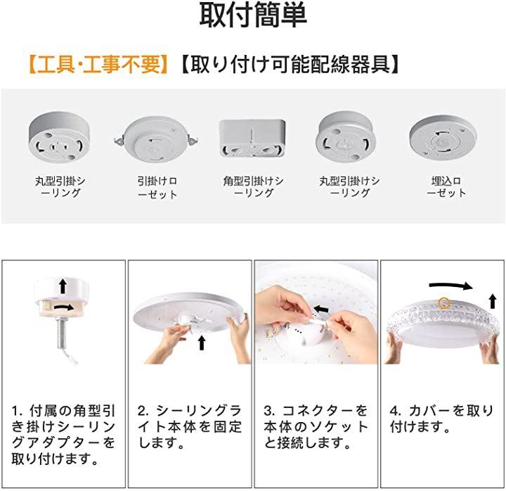 ---角型引掛シーリングアダプターを付いてるので、工事不要で簡単取付け可能です。