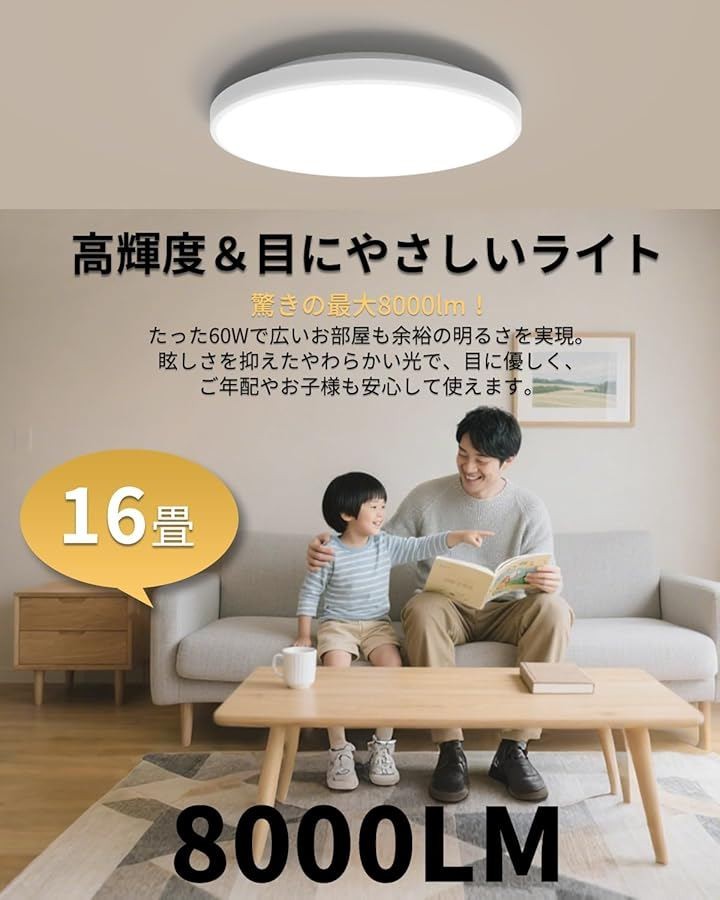 「高輝度」8000lm強力な明るさで、お部屋全体を昼間のように照らします。