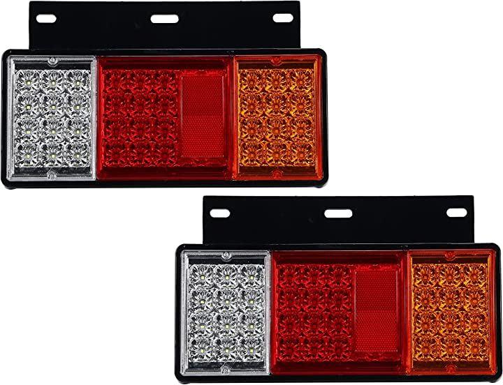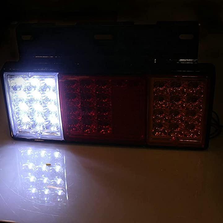 ・*「電源」:10~30V *「サイズ」(約):32 cm x 19 cm x 7 cm *「セット内容」:左右セット *「配線」:*黒=アース / *白=バック / *青=スモール / *赤=ブレーキ / *黄=ウインカー