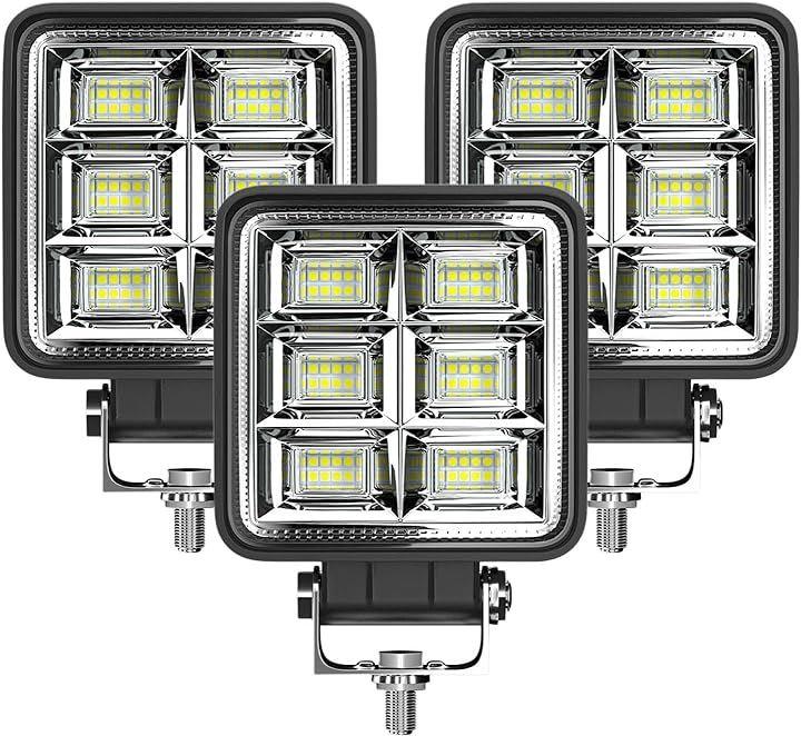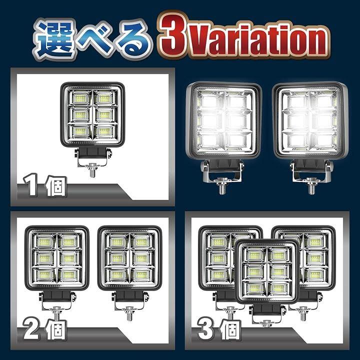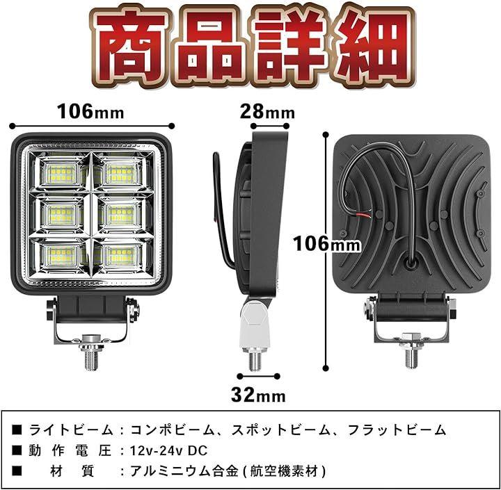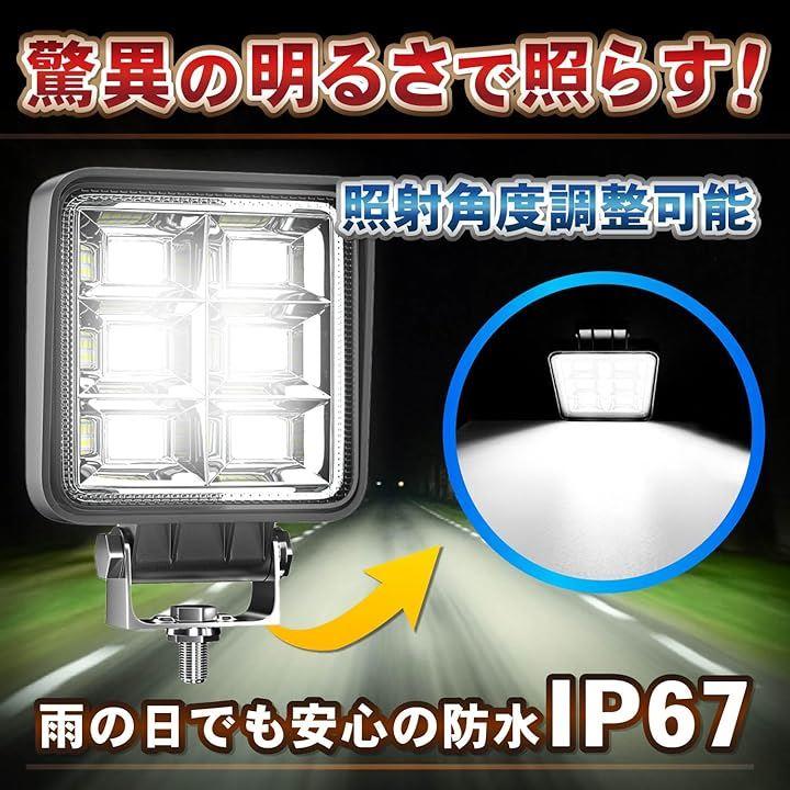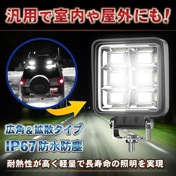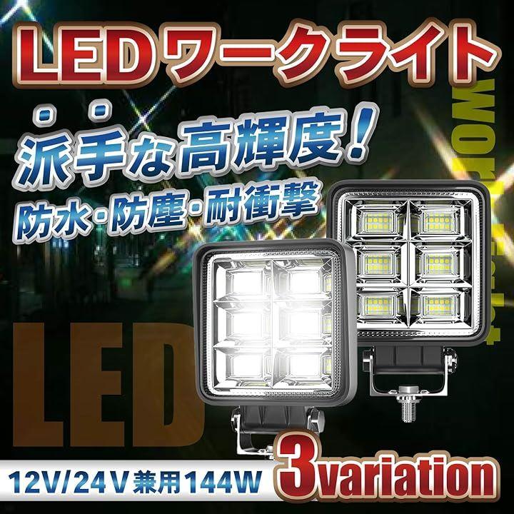 サイズ(約):10.8x10.8x2.8 cm / 発光色:ホワイト(白) / 動作電圧: 12v-24v DC / 消費電力: 144W / 防水性能:IP 67 / 色温度: 6500K / ルーメン:8000lm / 使用可能温度:-40~80℃ / LEDバルブ寿命:50000時間以上 / セット内容:ワークライト本体、ステー&ネジx2式