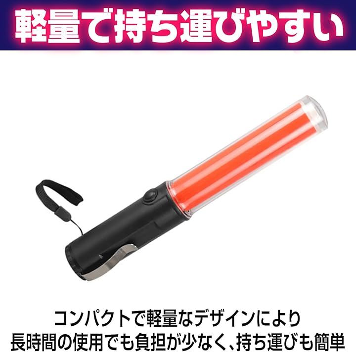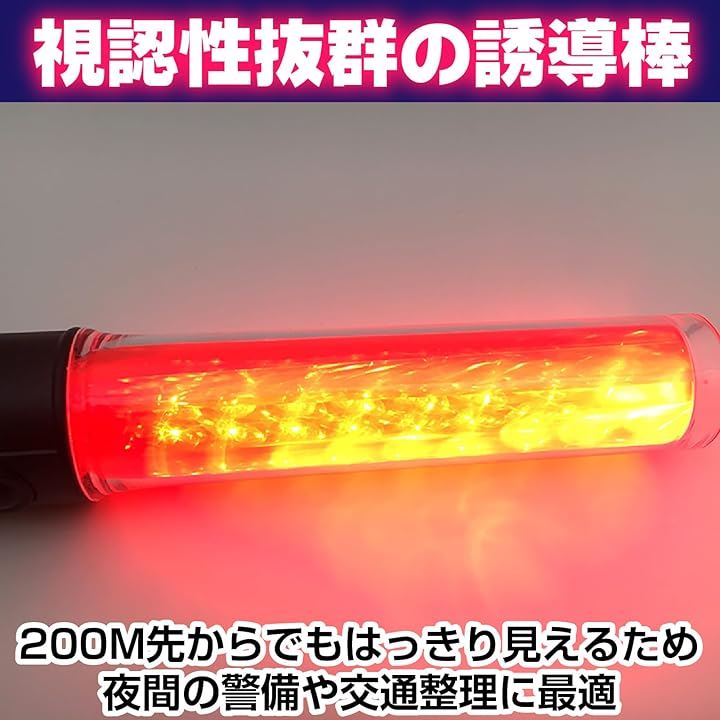 「視認性抜群の誘導棒」 明るいLEDライトが200M先からでもはっきり見えるため、夜間の警備や交通整理に最適です。