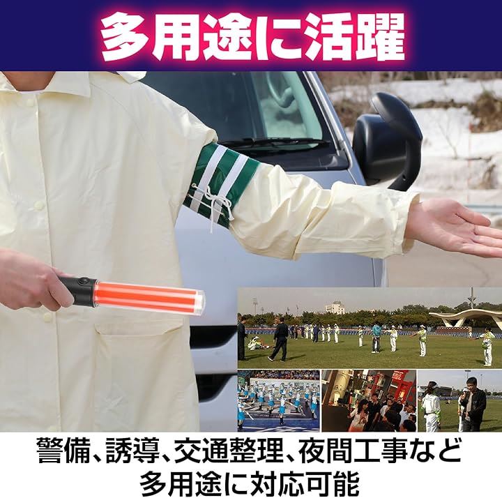 警備、誘導、交通整理、夜間工事など、多用途に対応可能。