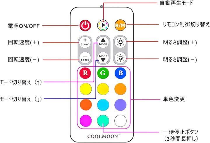 「特徴」6pin制御のパーツを光らせてリモコンで操作することができます。