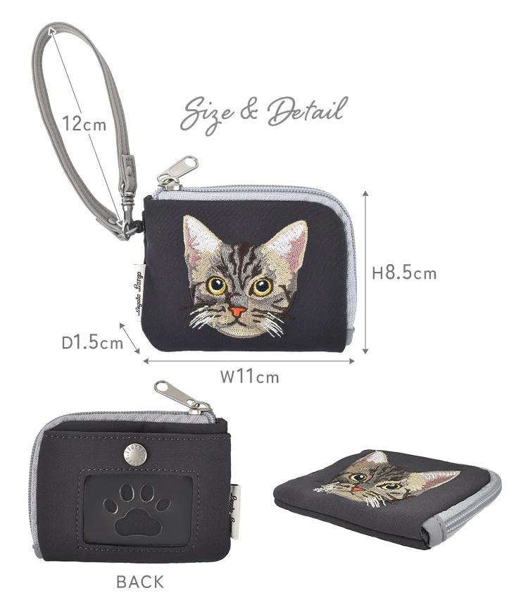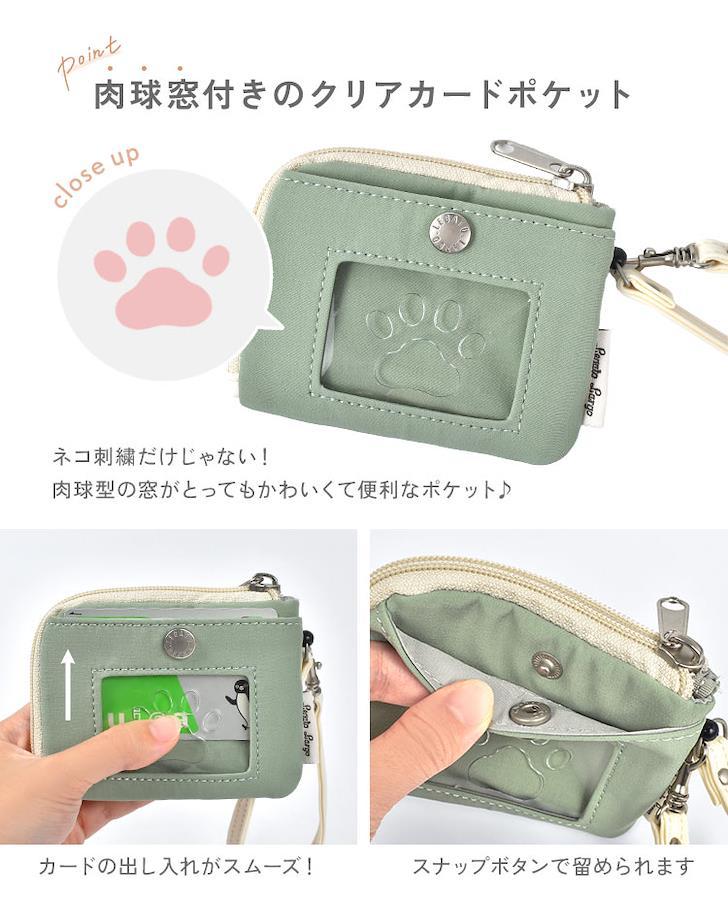 【ネコ刺繍リール付きパスケース】人気レディースバッグブランド Legato Largo(レガートラルゴ)から猫刺繍とコットン調の生地が大人かわいいパスケースが登場!最長57cm伸縮するリールが付いているので、改札でのタッチもストレスなく使えます。背面のカードポケットはカードの取り出しに便利なスライド窓付き!スライド窓は肉球の形になっています♪さらに、小物入れやキーケースとしても使えるファスナーポーチも付いています♪猫好きにはたまらないデザインと使い勝手にもこだわったオススメのアイテムです。