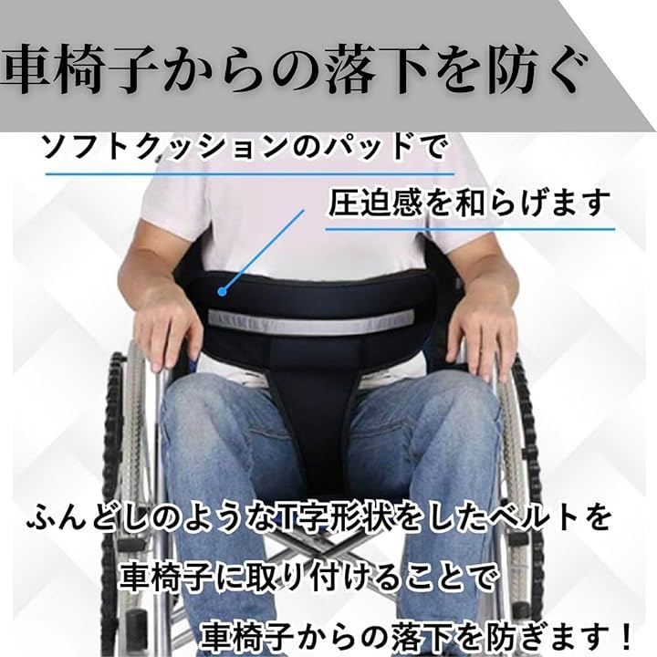 車椅子からの転落防止に ふんどし型サポートベルトを車椅子に装着することで、座位時の前滑りや転落を防止。