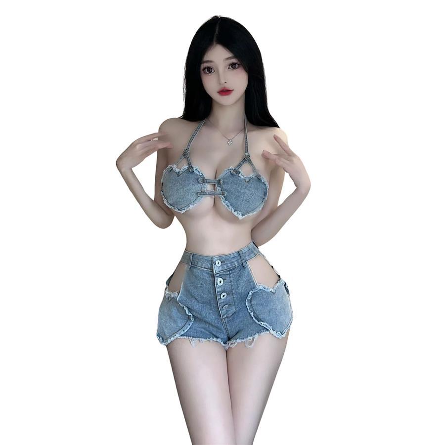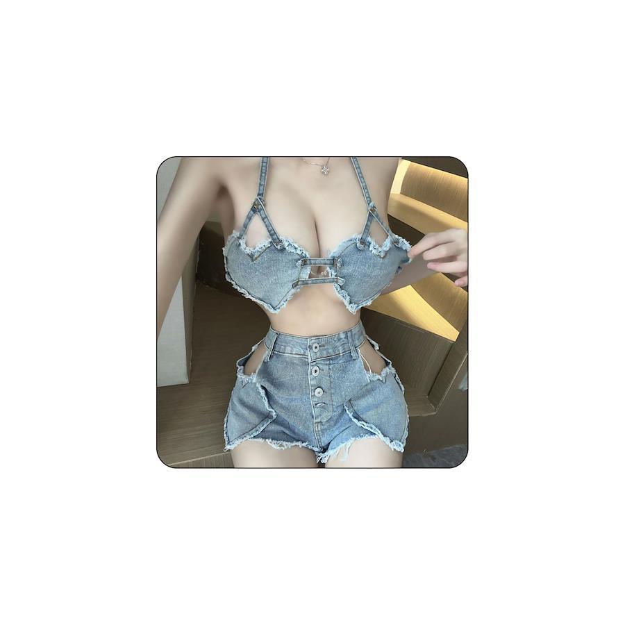 ?【セット内容】ブラジャー+ショートパンツ?【サイズ】フリーサイズ(目安S-Lサイズ) 、推奨体重40kg~60kg?【素材】ポリエステル?この水着はクラシックなデニムとセクシーなデザインが組み合わされています,あなたを個性的で魅力的に見せます。濃厚なY2Kスタイルで、可愛らしいハートデニム柄が散りばめられ、ロマンチックな時を表現し、優美で魅惑的な雰囲気を演出します。?特別な場面で素敵な思い出を作りたい方、バレンタインデー、新年、誕生日、結婚記念日、クリスマス、ハロウィンなどの特別な祝日に、またはCOSPLAYに興味があり自分で体験してみたい方におすすめです。ナイトウェアとして、コスチューム衣装として、クリスマスイブや、相手の誕生日、結婚記念日等に2人の時間をもっと熱くします。(#lf)(#lf)(#lf)商品購入前に、ストア紹介ページをご確認ください。