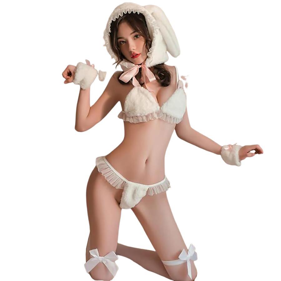 [LIKENNY] バニーガール 6点セット セクシー コスプレ エロ 過激 メイド服 ベビードール ランジェリー 逆バニー 三点式 可愛い ビキニ 誘惑 仮装 衣装