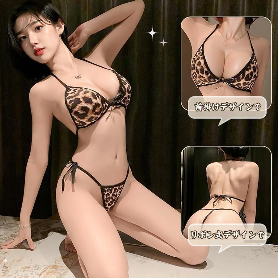 [LIKENNY] 豹柄 ビキニ 2点セット セクシー コスプレ ランジェリー セット ヒップ露出 過激 変態 sm えろい下着 大胆 可愛い コス