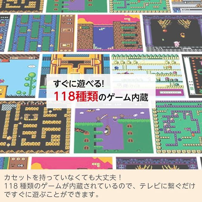 ■商品説明なつかしのゲームが楽しめる:子供の頃ゲームで熱くなった気持ちを思い出すFC互換機です。最新のゲームでは味わえない魅力たっぷりのレトロゲームは、若い世代の方からも注目を集めています。 お手持ちのFCカセットで遊べる:お家に眠ったFCカセットはありませんか?互換機ならお手持ちのFCゲームで遊べます。 手の平サイズのコンパクトさ:本体サイズは正規FC本体の約60%の大きさです。コンパクトなので小さなテーブルでも遊びやすく、いろいろな場所への持ち出して遊ぶことができます。 すぐに遊べる!118種類のゲーム内蔵:FCカセットを持っていなくても大丈夫!118種類のゲームが内蔵されているので、テレビに繋ぐだけですぐに遊ぶことができます。 USB電源タイプ:テレビやパソコンなどのUSBポートから給電することができます。お手持ちのUSB-ACアダプターを使用して、コンセントからの給電の可能です。 ※ファミリーコンピュータ(FC) は任天堂の登録商標です。 ※本商品は任天堂のライセンス商品ではありません。 ※一部のファミコンソフトには対応できない場合があります。?もっと見る