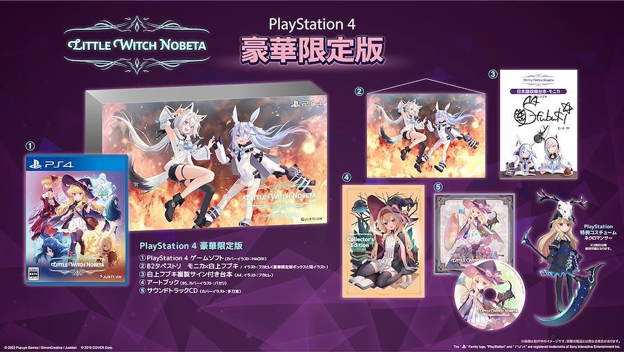 【デジタル壁紙セット】は有効期限切れにより使用・ダウンロードできません。ただ、玉座へ向え。――何度倒されたとしても。記憶を失った小さな魔女ノベタは、自らの謎を知るため独り古城を訪れる。不思議な黒猫との出逢い。そして待ち受けるのは強大な生魂(クラフトソウル)。新たな魔法とスキルを習得し、困難を乗り越えたその先にある玉座には一体どんな秘密が隠されているというのか?PlayStation 4版には特製コスチューム「ネクロマンサー」を搭載!▽PlayStation 4 通常版パッケージイラストレーター=HAONI▽PlayStation 4 限定版グッズ担当イラストレーター=アートブック:パセリ、サウンドトラックCD:手刀葉、複製サイン付き台本:モニカ×白上フブキ(イラスト:フカヒレ)、特製ボックス&タペストリー:モニカ×白上フブキ(イラスト:フカヒレ)