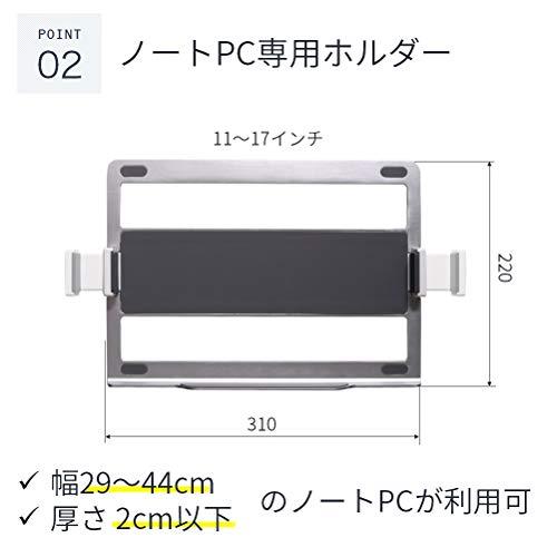 ? VESAマウントとノートPCホルダーが付属。 32インチまでのディスプレイまたは11~17インチ(最小29cm~最大44cm幅)のノートパソコンの何れか1台を設置してご利用いただけます。