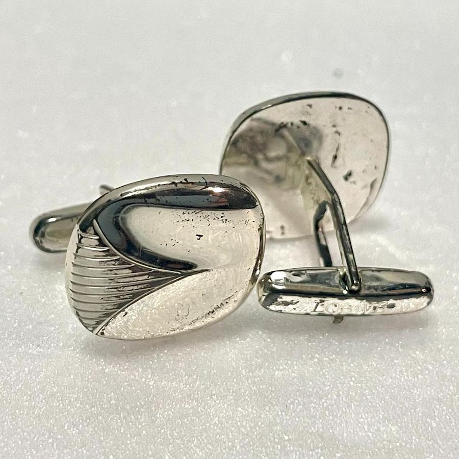 ☆こちらの商品はUSED品ですので新品や未使用品をお求めの方はご遠慮ください。エレガントな曲線デザインのシルバー製カフリンクス、Loeweのロゴ入り。