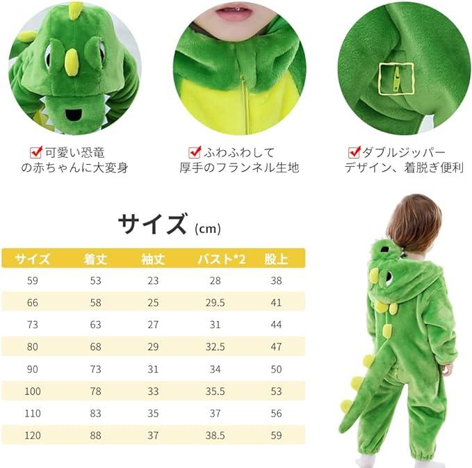 ■商品名[LOLANTA] キッズ 恐竜 着ぐるみ ベビー ハロウィン クリスマス 仮装 子供 コスチューム 防寒着 ルームウエア 男の子 女の子 誕生日 出産祝い 記念撮影 グリーン 120