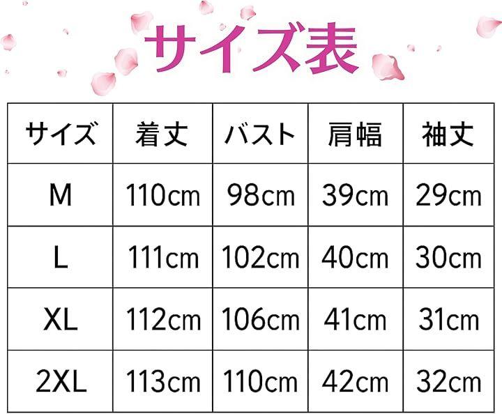 サイズ:Mサイズ 着丈110cm バスト98cm 肩幅39cm 袖丈29cm Lサイズ 着丈111cm バスト102cm 肩幅40cm 袖丈30cm XLサイズ 着丈112cm バスト106cm 肩幅41cm 袖丈31cm 2XLサイズ着丈113cm バスト110cm 肩幅42cm 袖丈32cm