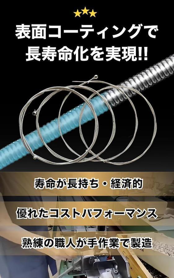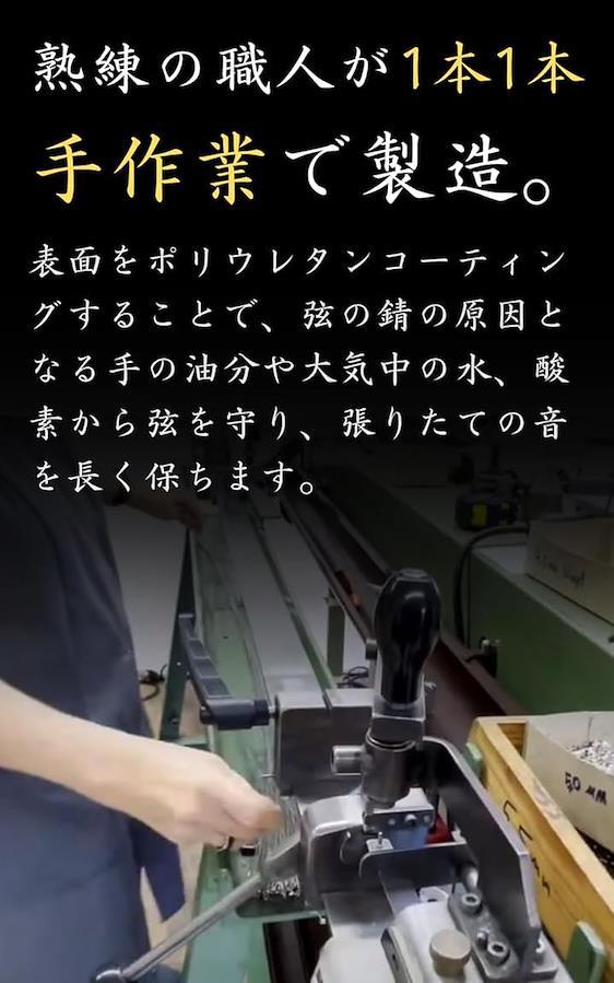 「熟練職人の技術が詰まったこだわりの弦」生産工場でギター弦・ベース弦の製造を長年担当する熟練の職人により、一本一本丁寧に手作りしたこだわりあるコーティング弦です。