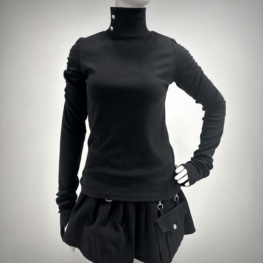 ”着回し抜群のタートルリブカットソー”・タートルがネックまわりでしっかりとカバー・襟元にシルバー釦デザイン・ロングスリーブは着用するとクシュクシュっと可愛く着こなせます。・柔らかい素材のカットソー---#ギャル ギャルファッション セクシー 可愛い フェミニン 双子コーデ ショート あざとい カジュアル Y2K シンプル 韓国ギャル ギャルコーデ サブジラギャル ゴスパンク ゴシック グランジ パンク 悪羅セクシー---《透け感》なし 《生地の厚さ》普通 《裏地》なし 《伸縮性》あり《生産国》中国