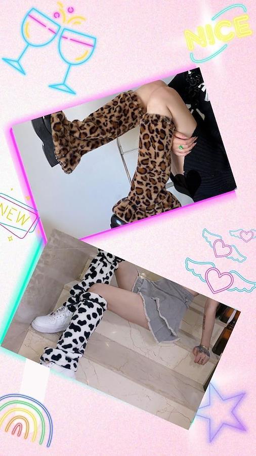 素材:フェイクファー バリエーション:ホワイト、ブラック、ヒョウ柄 長さ: 40cm 説明:履き口がゴムなので簡単に着脱ができます。