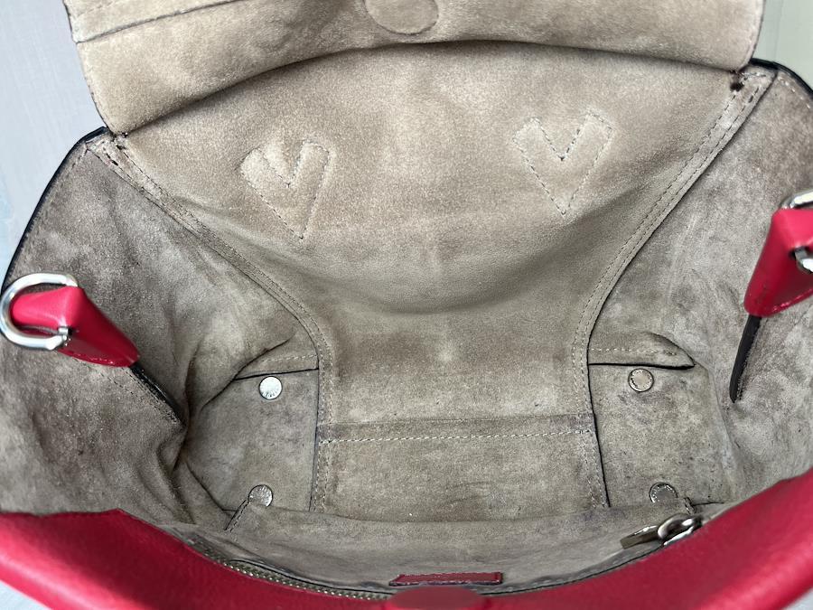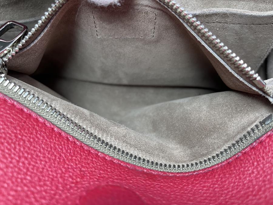 ・外側レザーは角の擦れ・底の軽い小傷こそありますが、全体としては非常に美しい状態。・ヴェルールレザー特有の上品な光沢と質感がしっかり残っています。・ハンドルは小傷程度で、柔らかさと弾力があり、使用に全く問題なし。・ショルダーストラップも付属しており、クロスボディ可能な実用性の高さが魅力。・金具部分のくすみも少なく、全体的に上等な外観です。