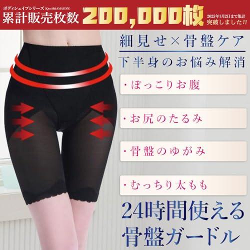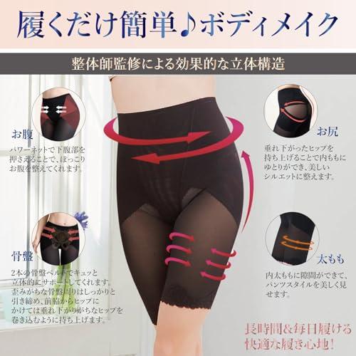 登録情報素材構成 ナイロン78% ポリウレタン22% 取り扱い案内 手洗いのみ【骨盤の歪みに】美容にも健康にも注目されている骨盤の補正。骨盤をサポートするベルトとボディを整える補正ガードルを一体化しました。骨盤ベルト&補正ガードルで骨盤と体型を同時に補正!産後ママにもおすすめのガードルです。【お腹 引き締め】ミドルウエストだから、骨盤回りを集中引き締めながら、膝上まですっぽり。段差がつきにくく、はみ出るものは全て整えて収める。下腹部のぽっこりや横にはみ出がちなお肉をスッキリ!【ヒップアップ補正】たるみがちなお尻周辺をダブルメッシュ加工で下からググっと引き上げ。張りがありながらも丸味のある女性らしい美尻に。日中は歩くたびにキュッキュッとヒップアップ運動。【太ももスッキリ】弱圧加工で外もも、強圧加工で内ももをサポートし、スッキリと細見え。段階的に足口まで着圧を加え、素肌との段差をより目立たなくさせるデザイン。【通気性抜群】メッシュ加工のパワーネットで通気性が拔群、夏も冬も季節を問わず使えます。デリケートなクロッチ部分は、コットン100%を採用。1枚で着用できるから、アウターにも響きにくい。S-Mサイズ:ウエスト56~66cm,ヒップ79~90cm・M-Lサイズ:ウエスト67~84cm,ヒップ90~102cm・L-XLサイズ:ウエスト85~109cm,ヒップ102~115cm
