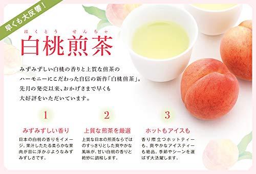 果汁あふれる新鮮な白桃を思わせる甘くみずみずしい香りを、上質な日本の煎茶にまとわせました。爽やかな味わいは、アイスティーにもおすすめです。甘くみずみずしい日本の白桃の香りを引き立てつつ、清々しい煎茶の香りと味わいも感じられるフレーバードティーです。 白桃のフルーティーな余韻と、上品ですっきりとした煎茶の風味が重なる味わいは、アイスティーにしていただいても、大変おいしくお召し上がりいただけます。