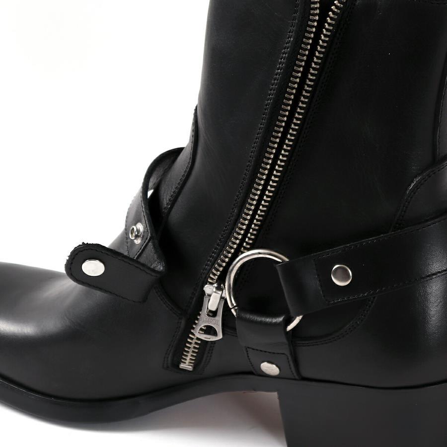 | 【素材】 返りも良く伝統的なマッケイ製法で作られた適度に高い5cmのヒールブーツ しっとりとしてきめの細かい牛革をアッパーに使用。材料も全て国内から手配された純国産品。 ※本革を使用している為、多少のムラや小キズがある場合がございます。 【デザイン】 ブランドが得意とするヒールアップブーツ。 細身のラウンドトゥの木型を使い返りの良いマッケイ製法。 細身のスキニーパンツやモノトーンスタイルにおススメ。 ※リングベルトは、スナップボタンになっており着脱の時に外せる使用になっております。 【サイズ感】 ※普段通常の革靴で25.5cm、スニーカーで26.5-27cmを着用するスタッフで<25.5cm>でジャストサイズでした。 ※サイズ感は、個人差がございますのであくまで参考程度にお考えください。 ■ブランド...whoop-de-doo costume no age ■カラー...BLACK ■アッパー素材....牛革 ■底材.....合成ラバー ■足長...約29.7cm ■丈......約21cm(ヒール含) ■筒周り...約23cm ■ヒール...約5cm ■日本製 *上記は全て25.5cmで計測した数値です。 *多少の誤差が生じる場合がございますので予めご了承下さい。 whoop de doo co.,ltd whoop'-de-doo' フープディドゥ |