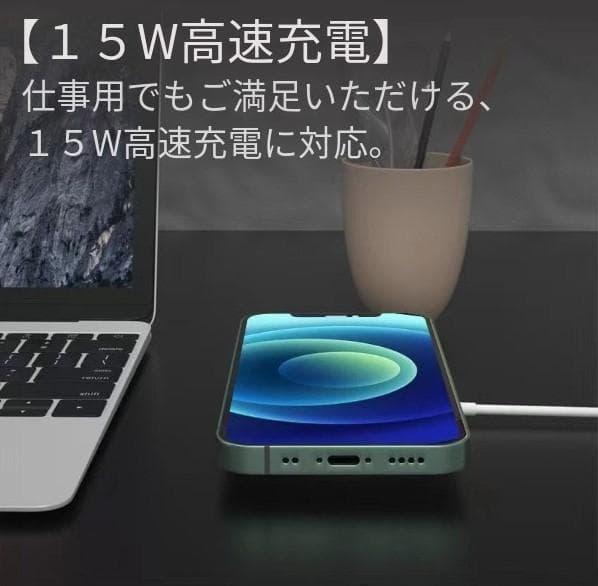 マグネットでスマホ背面にしっかり吸着する、MagSafe対応マグネット式ワイヤレス充電器です。