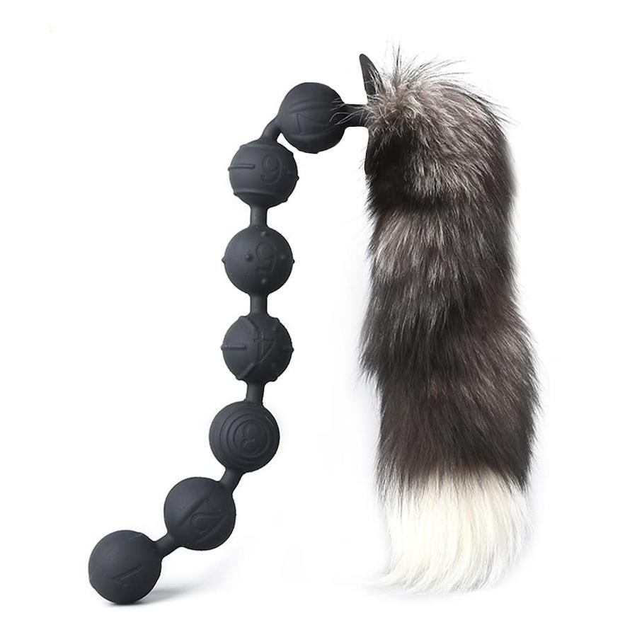 MAPARON 2点セット アナルビーズ 7ビーズ アナル尻尾尻尾付き シリコン 取り外し可 フェイクファー ブラック L