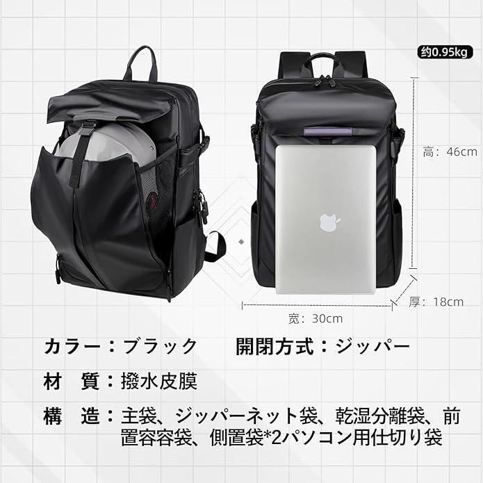 [maruno] ビジネス バックパック リュック バックパック 旅行バッグ 大容量 の 収納 スペース 自転車 の ヘルメット バスケットボール サッカーボールも 収納 pcリュック 通学 通勤 出張 旅行 プレゼント 黒